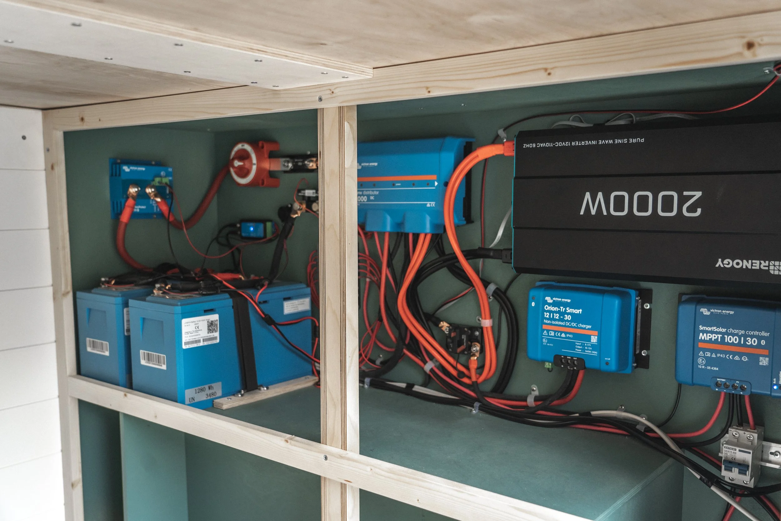 2x Victron Smart Lithium 100ah batteries - These batteries connect via bluetooth to your phone and you can monitor each cell individually