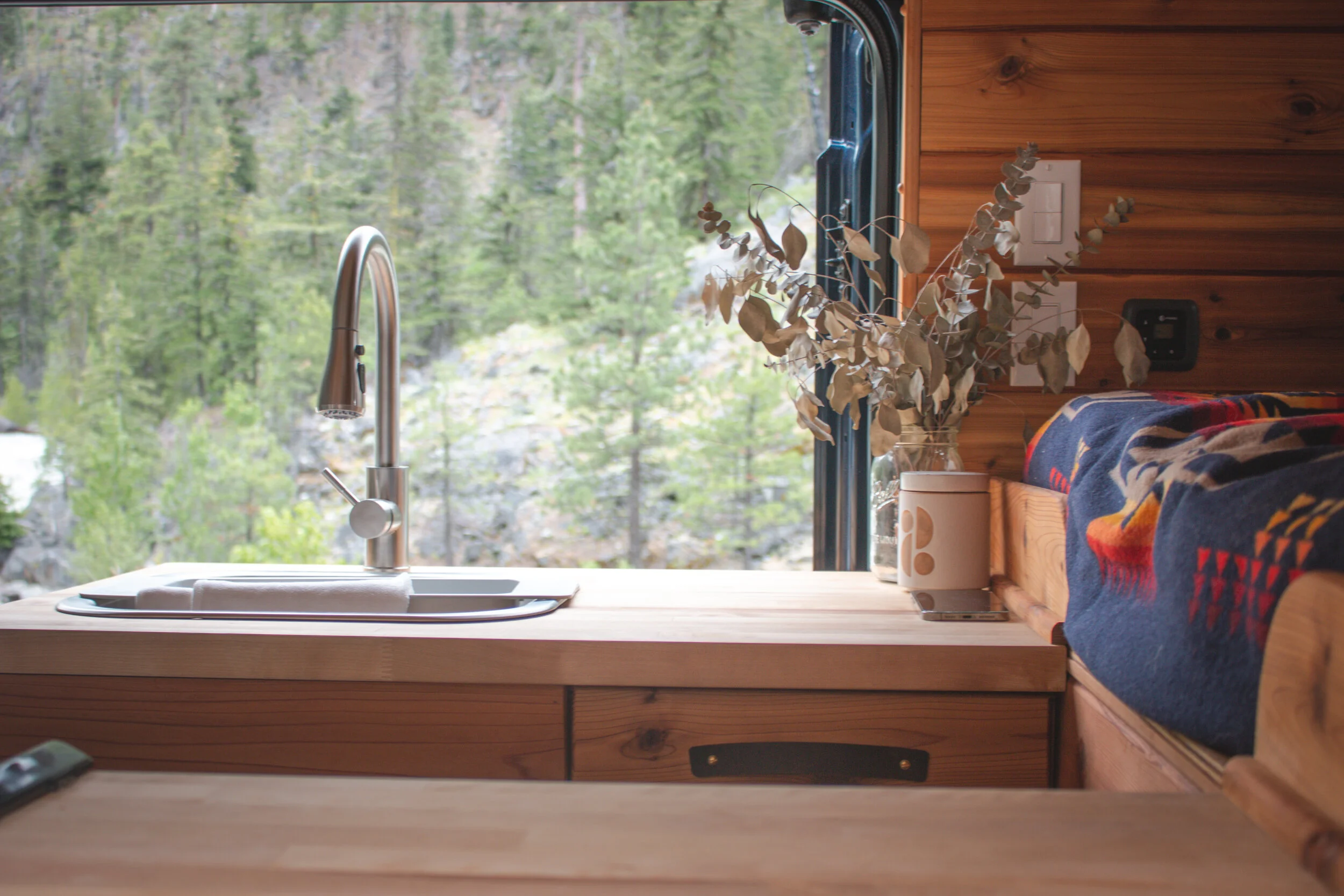 We initially met Jason and Suz through the process of selling our first build, the Acacia. Impressed by our craftsmanship and aesthetic they were concerned about storage for themselves and their pup as they were planning on a two year van life adventure. They inquired if we could create a custom build for them and the rest is history.